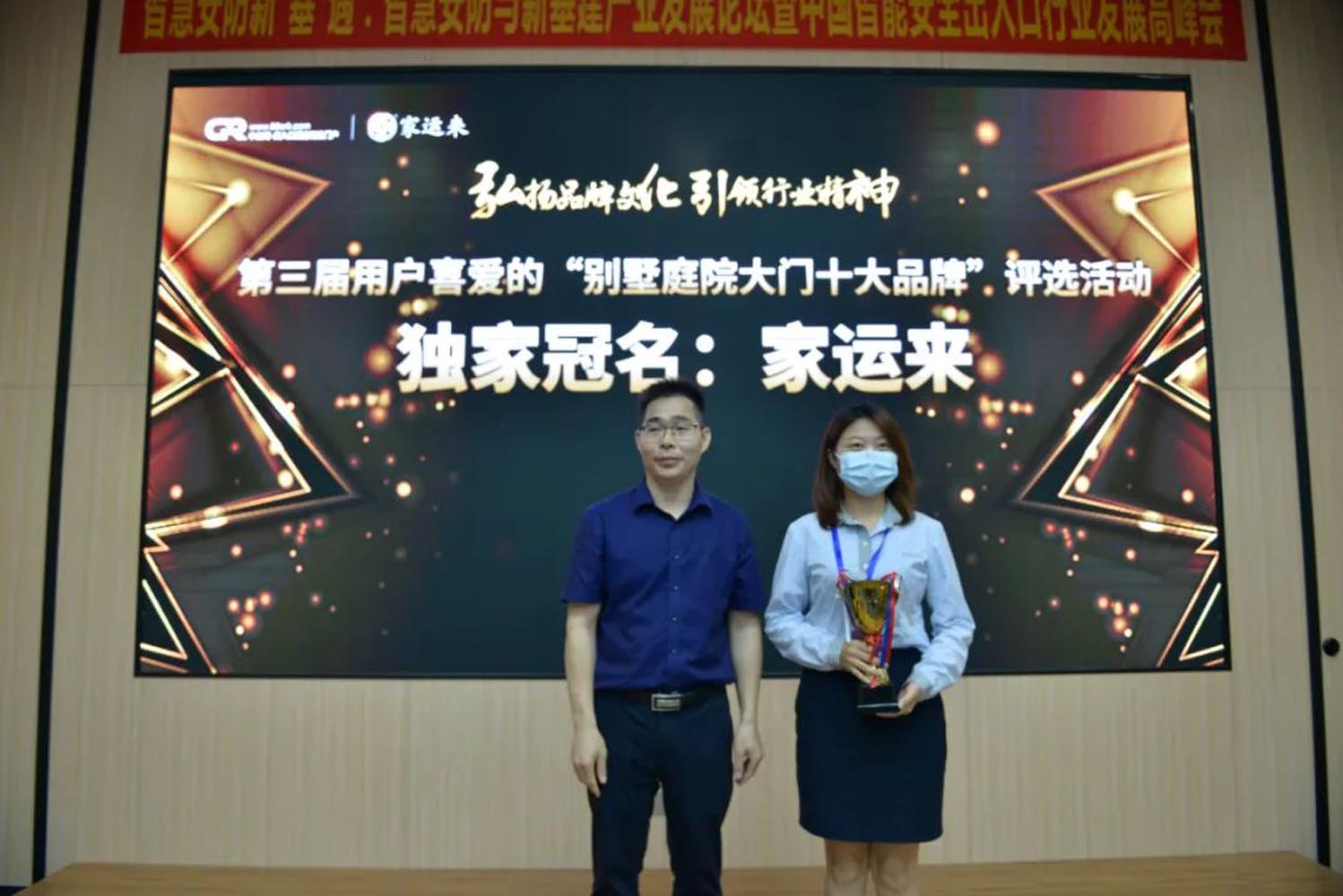 金鴻星旗下高端品牌“家運來”獨家冠名第三屆用戶喜愛的”別墅庭院大門十大品牌”