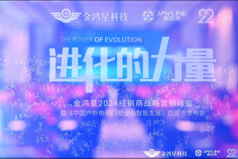 于高山之巔方見大河奔涌,于群峰之上更覺長風(fēng)浩蕩,金鴻星2024年全國經(jīng)銷商戰(zhàn)略營銷峰會(huì)暨《中國戶外電動(dòng)門安全與智能發(fā)展》發(fā)布會(huì)圓滿成功!創(chuàng)輝煌,千里之行始于今朝;踏征程,萬里揚(yáng)帆再啟航;乘八面之風(fēng),應(yīng)萬眾期待;不負(fù)青春,不負(fù)韶華;感恩遇見,同心同行。