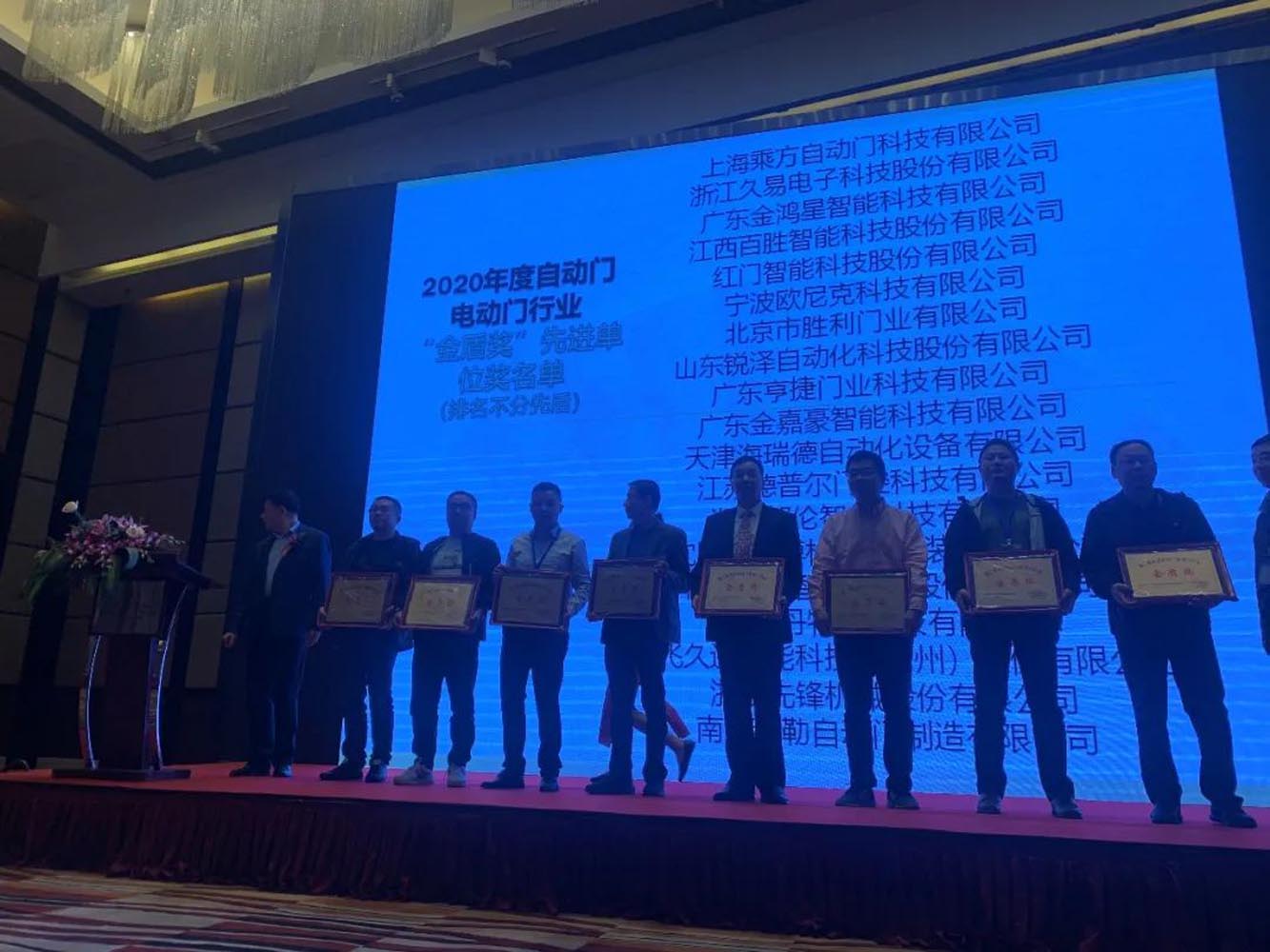 “新時代、新理想、新征程”——2021‘全國自動門電動門行業(yè)年會在北京盛大召開,金鴻星憑借在經(jīng)濟效益、社會效益、經(jīng)營管理、科技創(chuàng)新等方面強勁的綜合實力,在年會上再次榮膺“金盾獎‘先進單位’”