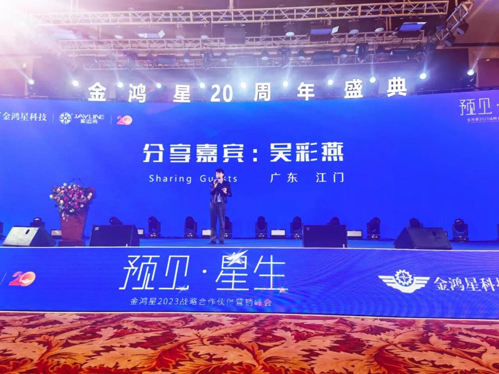 會議伊始,金鴻星聯(lián)合創(chuàng)始人黃笑群女士為此次會議發(fā)表致辭,金鴻星已經(jīng)走過了二十載,取得了一定的成績與榮譽(yù),凝聚了越來越多的經(jīng)銷商伙伴,從陌生到熟悉,一路同行,攻克了無數(shù)的難關(guān),也共證了彼此的成長。2023年是金鴻星探尋新的增長之路,以初心育匠心、以匠心守初心.