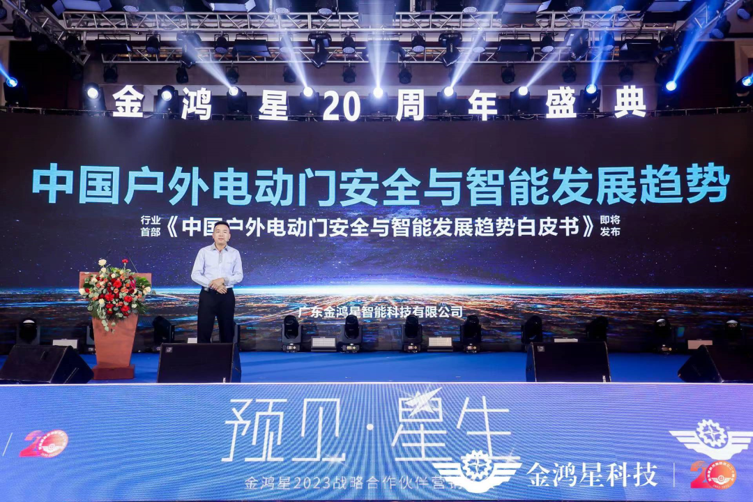 金鴻星董事長金國建先生為我們發(fā)表《中國戶外電動(dòng)門安全與智能發(fā)展趨勢》的主題分享,并于率先在行業(yè)關(guān)于24V安全電壓驅(qū)動(dòng)以及智能控制系統(tǒng)的全系列標(biāo)配啟動(dòng)儀式,同時(shí)邀約中國建筑金屬結(jié)構(gòu)協(xié)會潘冠軍副秘書長、中國建筑金屬結(jié)構(gòu)協(xié)會自動(dòng)門電動(dòng)門分會戴建國副會長、中出網(wǎng)CEO李明發(fā)先生以及客戶代表出席啟動(dòng)儀式。